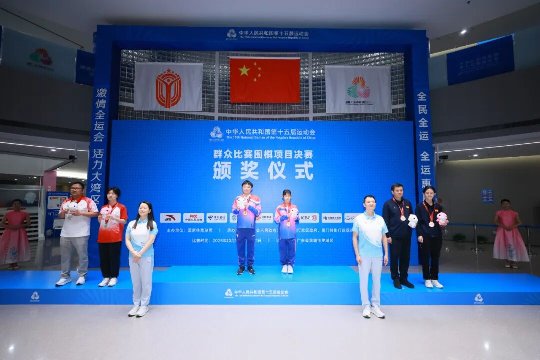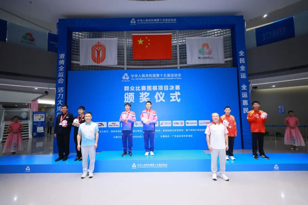 赛后举行了颁奖仪式。十五运会群众赛事活动棋牌类项目竞赛委员会执行主任、中国围棋协会主席常昊,中国围棋协会名誉主席王汝南,副主席孙光明,十五运会群众赛事活动棋牌类项目竞赛委员会执行主任、深圳市罗湖区人民政府副区长詹辉,十五运会群众赛事活动棋牌类项目竞赛委员会副主任、广东省体育局群众体育处副处长张壮文,十五运会群众赛事活动棋牌类项目竞赛委员会副主任、深圳市罗湖区文化广电旅游体育局局长马瑛,深圳市群众体育促进中心主任张文东,中国围棋协会理事、广东省围棋协会会长梁伟棠,十五运会和残特奥会深圳赛区执委会竞赛部部长助理、深圳市群众体育促进中心副主任张进,江苏省棋牌运动管理中心主任、江苏棋院院长朱晓军等领导和嘉宾为各组获奖冠军、亚军、季军的棋手颁发了奖牌与吉祥物。