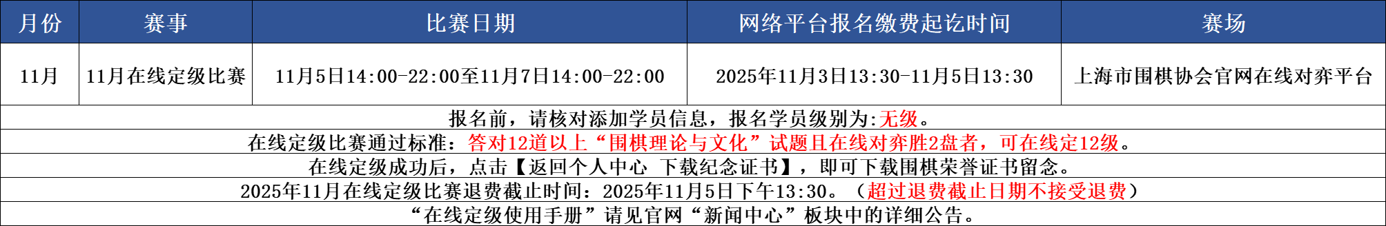 各参赛者务必在比赛前一周浏览上海市围棋协会网站首页【新闻中心】再次进行赛事信息的核实与查询。