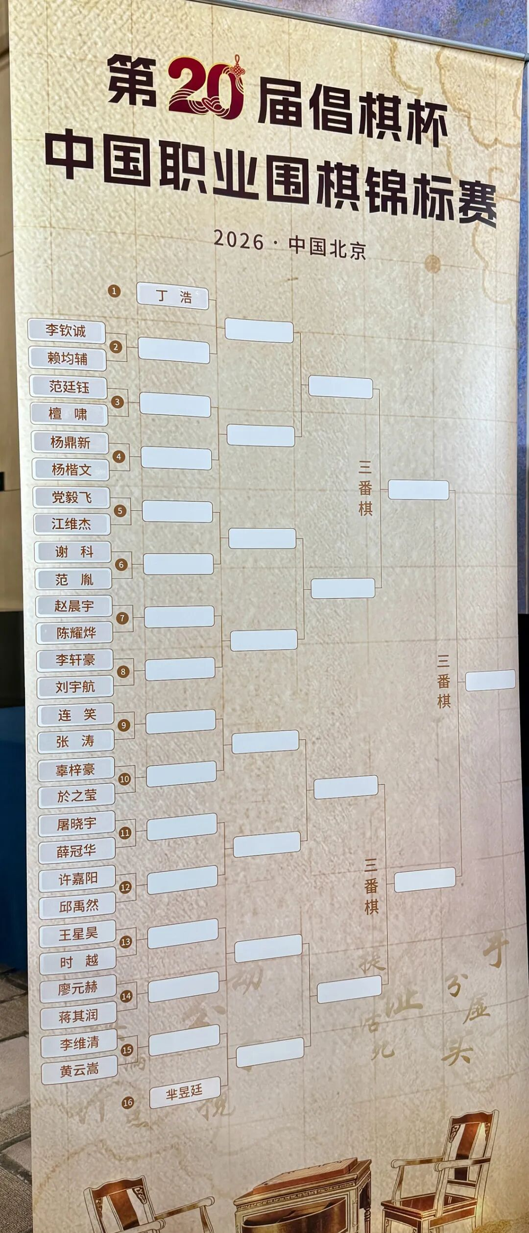 上届冠亚军丁浩、芈昱廷首轮轮空