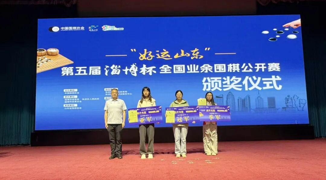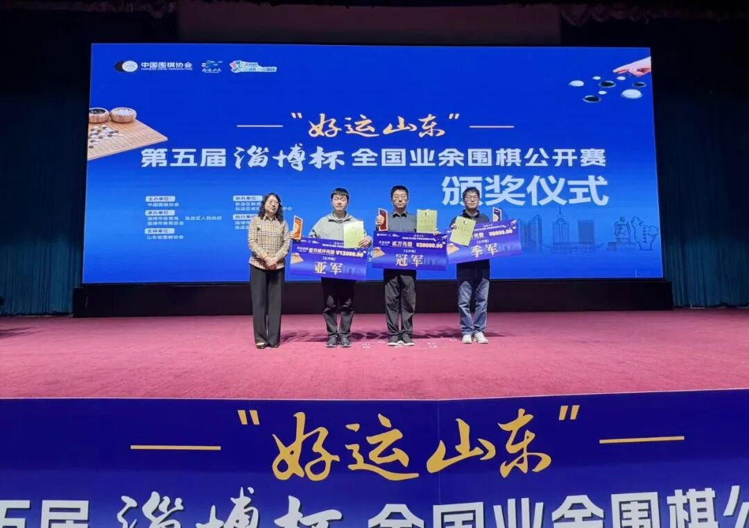 4月20日,“好运山东”第五届淄博杯全国业余围棋公开赛在山东省淄博市蓝海国际大饭店闭幕。本赛事由中国围棋协会主办,淄博市体育局、淄博市体育总会、张店区人民政府联合承办,张店区教育和体育局、张店区体育事业服务中心协办,多方联动为赛事顺利开展提供了坚实保障。本次赛事汇聚了来自全国23个省市的623名围棋选手同台竞技。最终潘文君、马天放、孙正晗获公开组前三名,黄晓迪、彭乐怡、肖丽朵获公开组女子前三名;严剑刚、丁海峰、苏志成获45岁及以上组前三名。