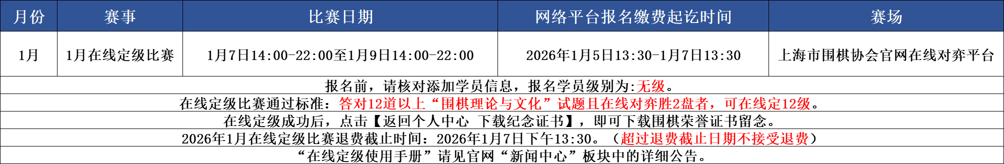 各参赛者务必在比赛前一周浏览上海市围棋协会网站首页【新闻中心】再次进行赛事信息的核实与查询。